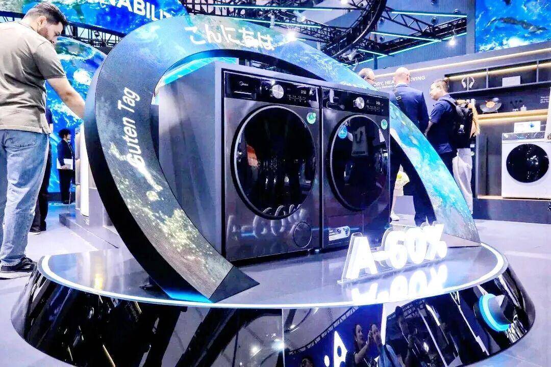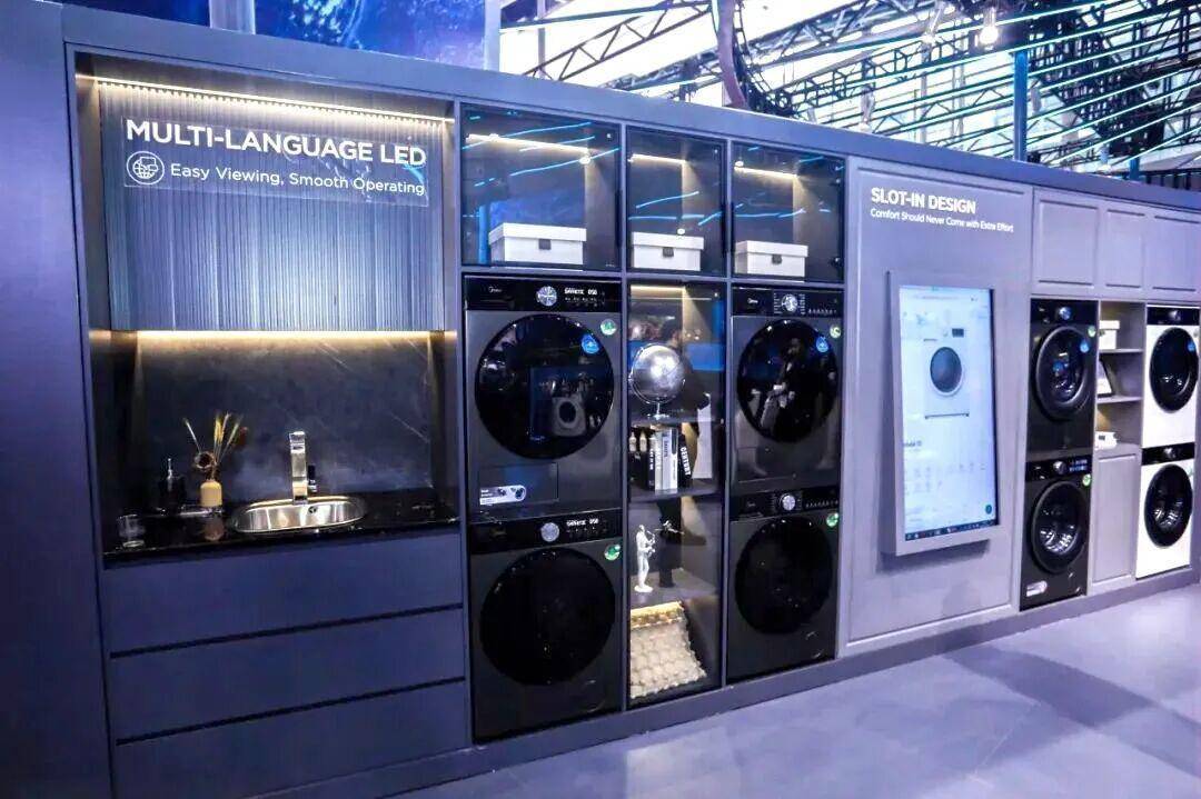 小天鹅纯平全嵌FRESCO系列洗烘套装亮相展会现场,吸引众多客户,并同步展示了多款创新清洁产品。